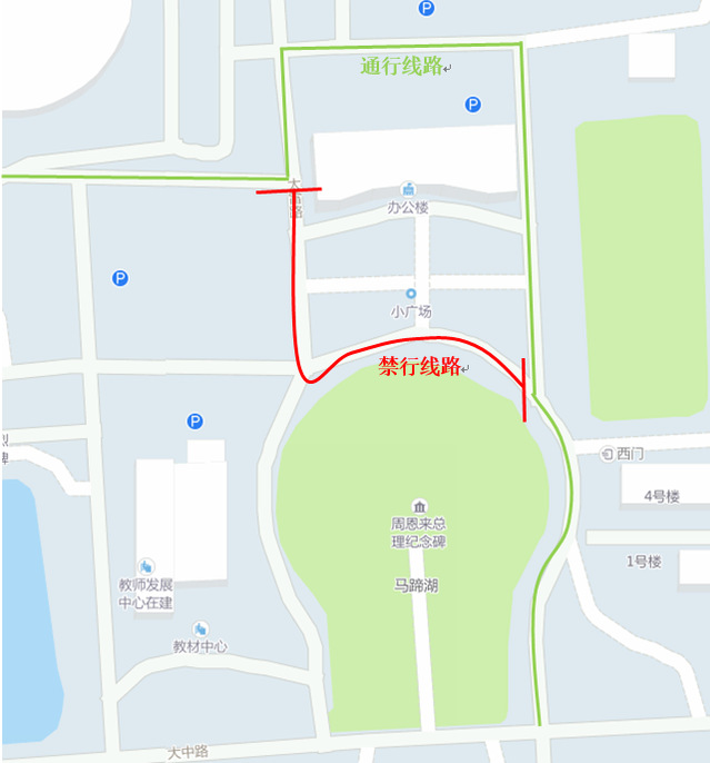 为营造良好的校园交通环境,现需对马蹄湖西侧道路进行修复,届时将对临近道路进行临时封堵,时间为2019年9月6日晚8时至2019年9月8日上午12时。封堵期间请各位老师、同学绕行。