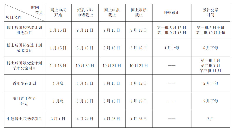 请有意向申报的博士后研究人员认真阅读《申报指南》,把握好新的要求。请各学院、各流动站精心组织好项目申报工作,及时通知有意向的申报人员。特别要加强在应届博士毕业生群体和海外对口合作高校的宣传,吸引更多优秀博士加入博士后国(境)外交流项目。鼓励各博士后流动站开展各具特色的博士后引进项目,吸引更多优秀外籍、留学回国人员加入博士后研究队伍。
