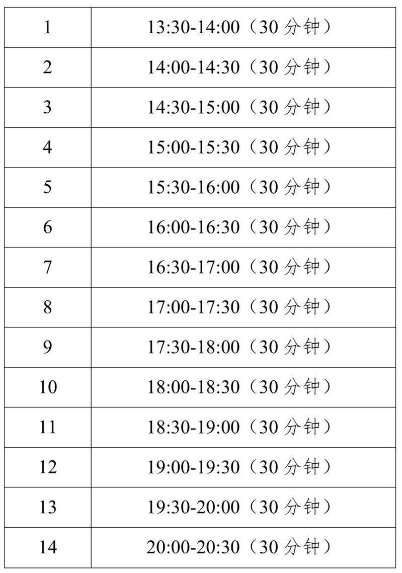 1.1月10日至1月30日、2月3日(正月初三)、2月6日至2月11日(正月初六至十一)每日13:30-20:30营业,每日设置十四个预约时段,每时段可预约300人(男125,女175)。