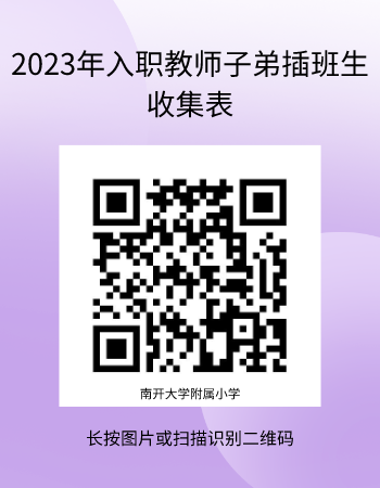 按照南开区教育局规定从即日起不再办理六年级学生的插班工作。因此附小仅能接收当年beat365中文官方网站各院(系)引进人才教职工子弟(二代)一至五年级的学生,并为其办理插班手续。如有需要的家长,请您在8月18日前扫描下方二维码进行登记填写。